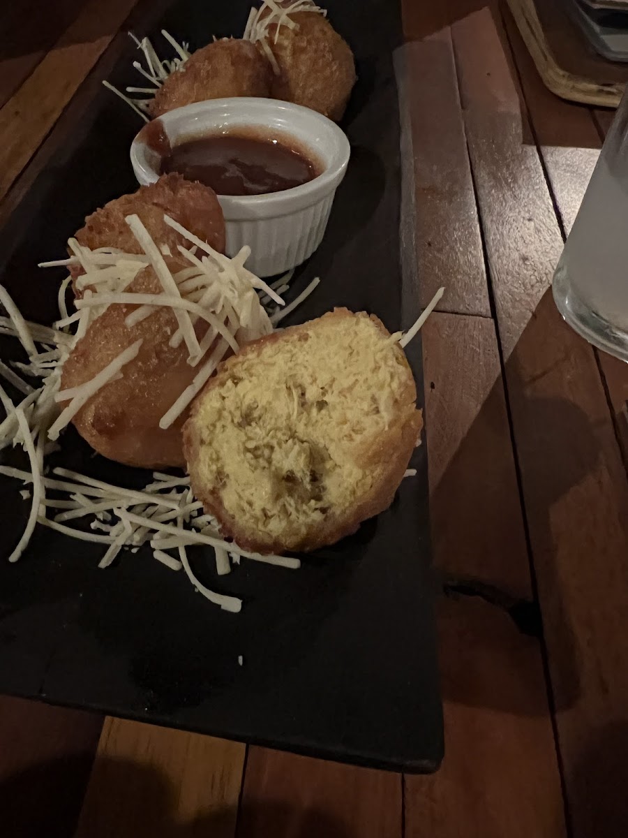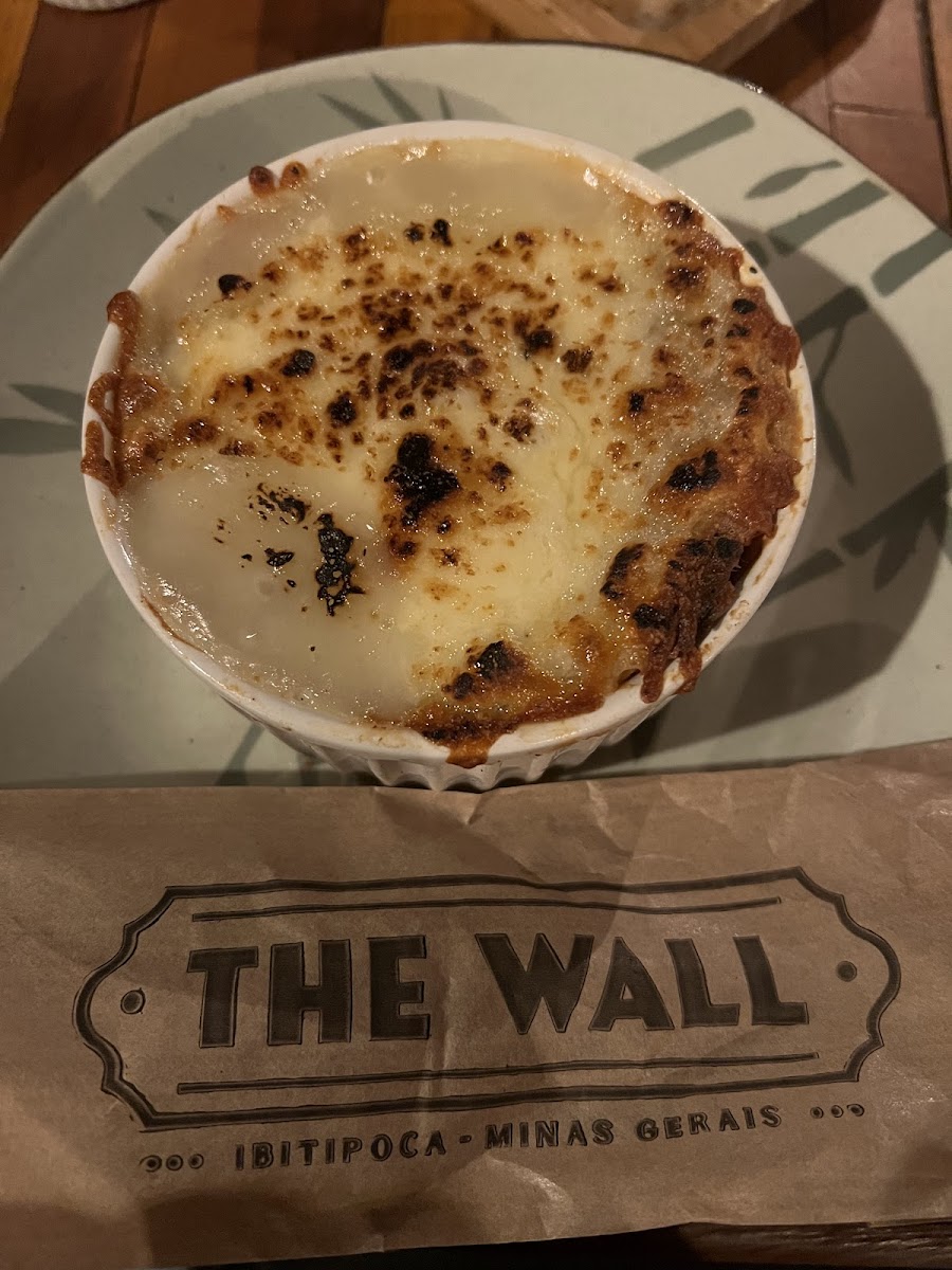 Food-wise, The Wall Ibitipoca keeps things comforting and familiar, yet memorable. The cheese balls are a favorite for sharing, crispy on the outside and satisfying without being heavy. They work especially well alongside a drink, making them a go-to starter. The onion soup adds a warm, rich option to the menu, ideal for cooler evenings in the region and a reminder that simple dishes, when done right, can stand out.