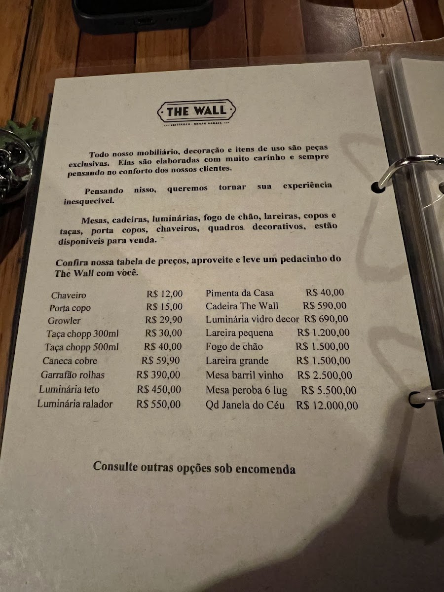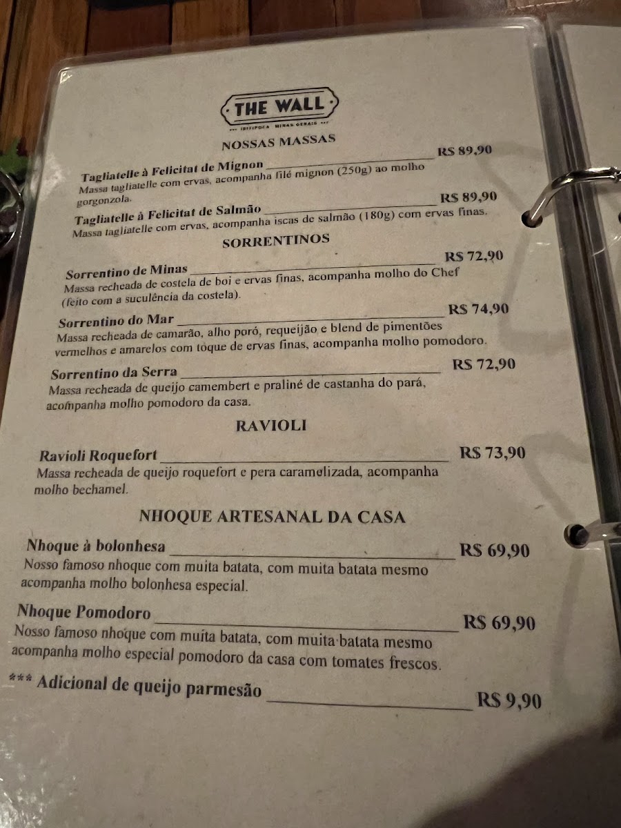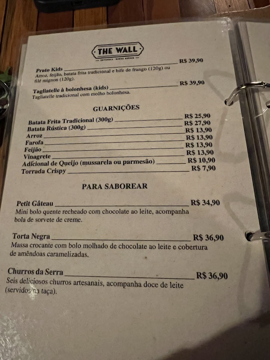 Each dish is thoughtfully crafted, ensuring that guests experience a mix of comfort, indulgence, and quality in every bite. The Wall Ibitipoca’s menu truly caters to a wide range of tastes, making it an ideal spot for both casual meals and special occasions.