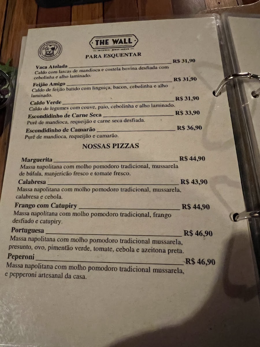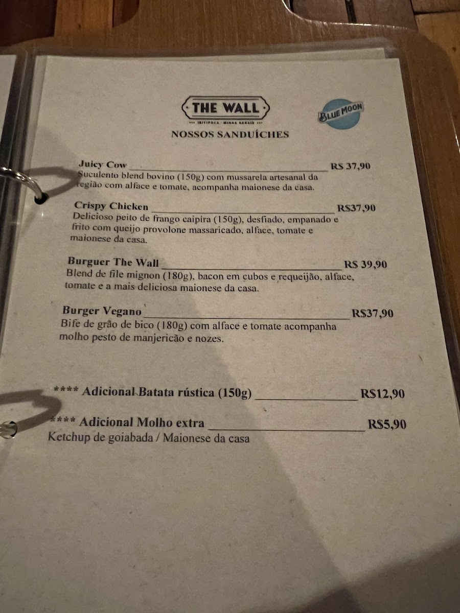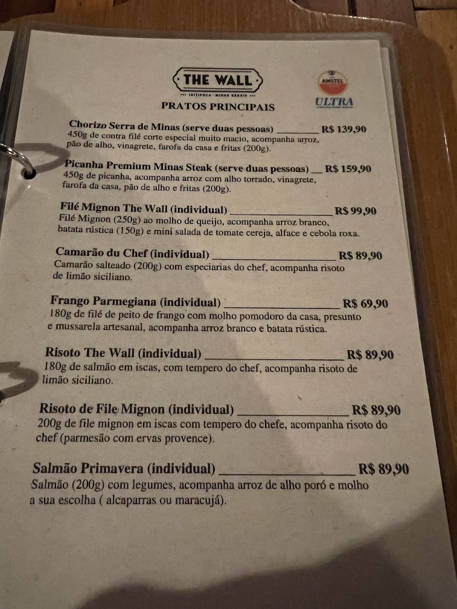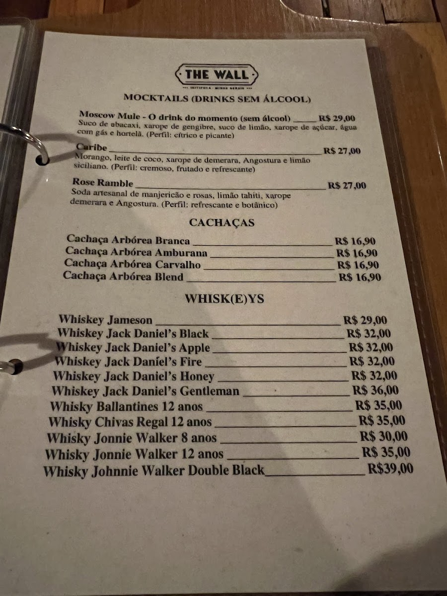Each dish is thoughtfully crafted, ensuring that guests experience a mix of comfort, indulgence, and quality in every bite. The Wall Ibitipoca’s menu truly caters to a wide range of tastes, making it an ideal spot for both casual meals and special occasions.